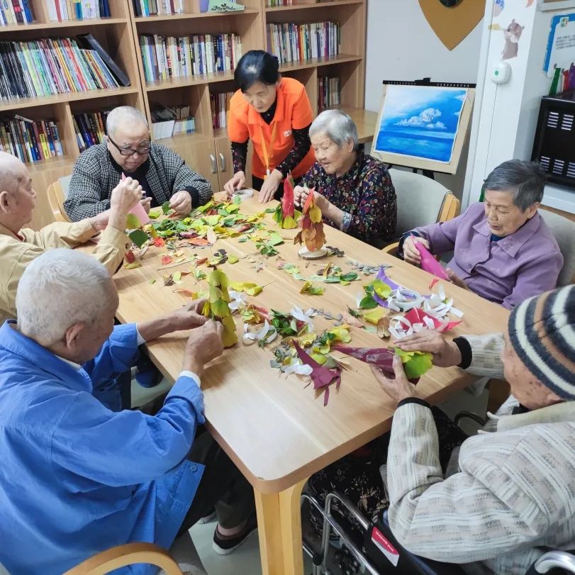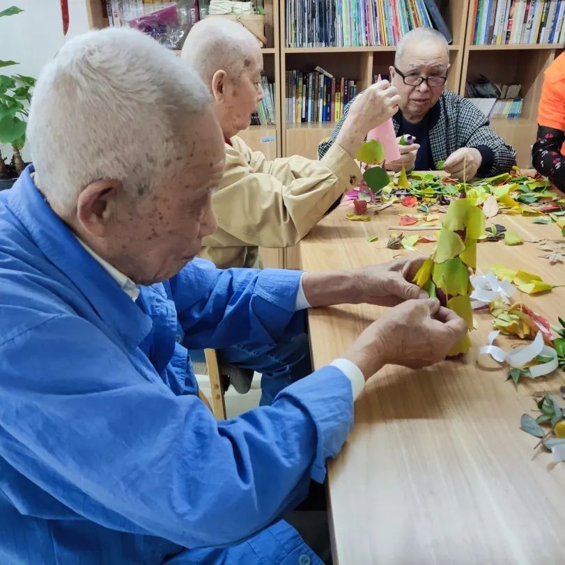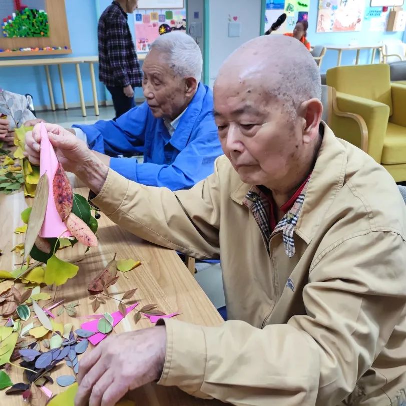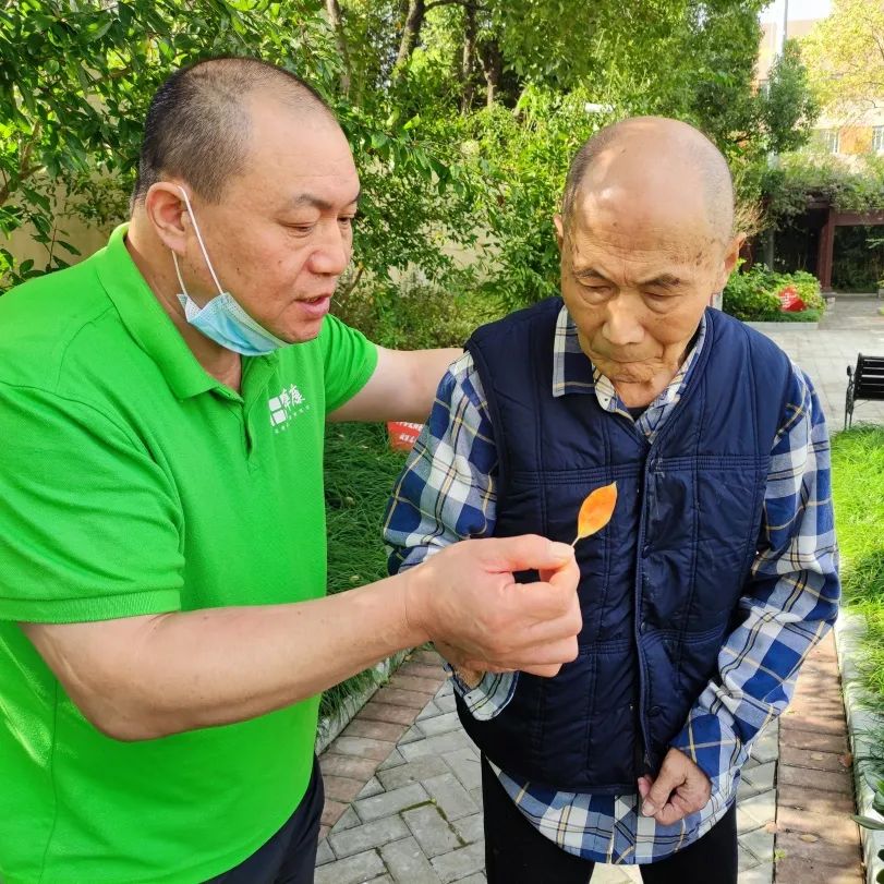 通過拾落葉,讓認知癥長者感知季節(jié)的變化,感受自然界的美好,同時也放松長者的身心,通過采集落葉制作手作的活動,讓長者的肢體得到鍛煉,同時也發(fā)揮長者的想象力與創(chuàng)造力,活躍長者的思維,身心都得到一定的鍛煉。