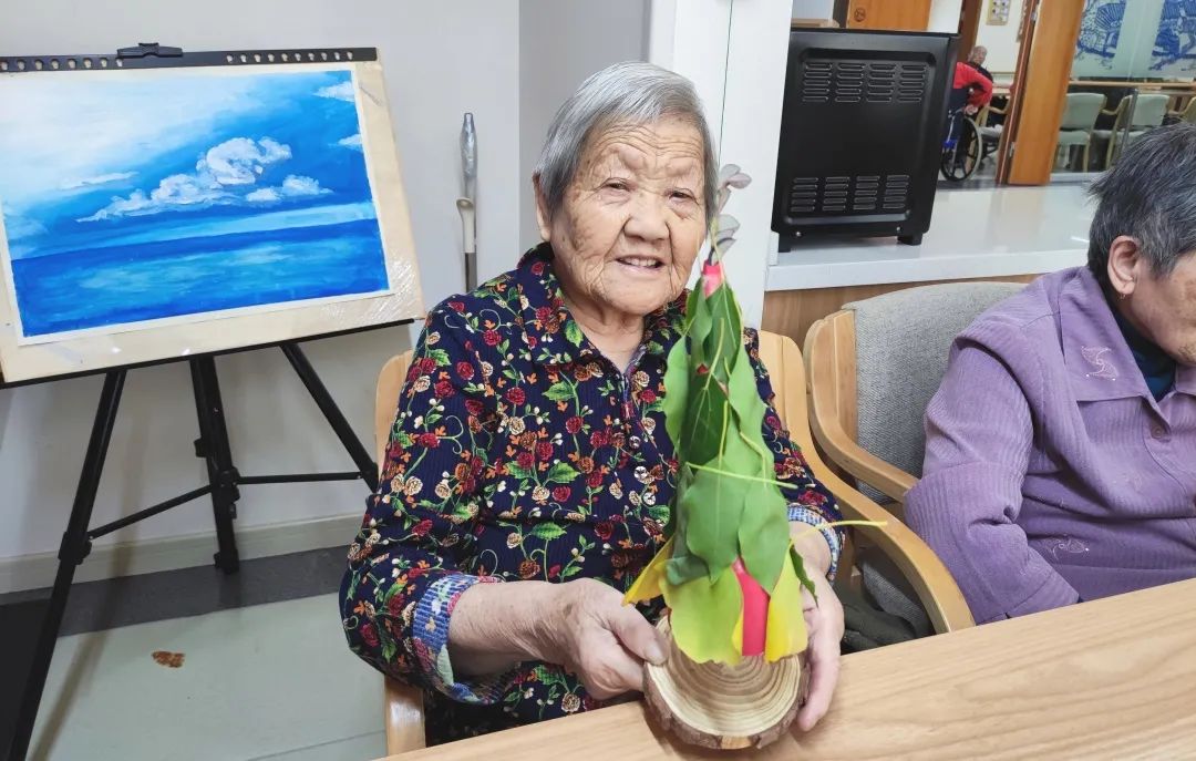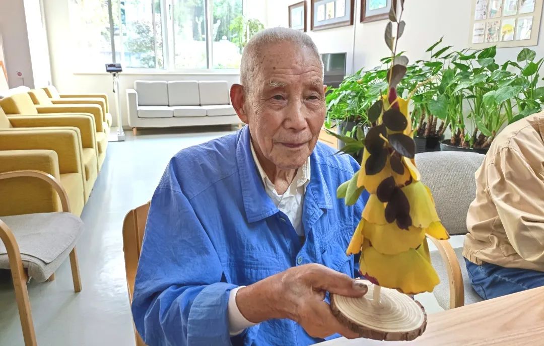 爺爺奶奶們一邊看著自己制作的大樹,一邊對自己的作品進行點評,大家都對自己的作品都很滿意。爺爺奶奶們帶著自己親手制作的大樹,一起來合個影吧。