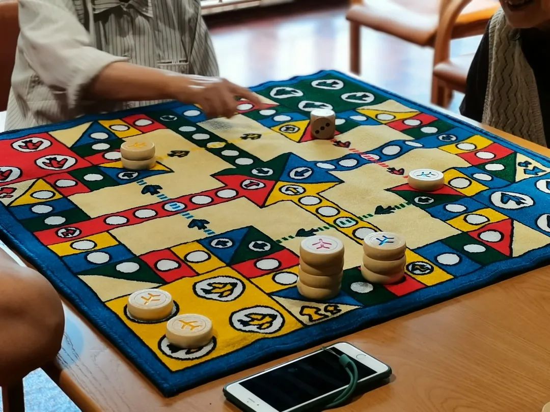 長者們說,飛行棋小時候其實玩的并不多,但為人父母后,卻時常陪著孩子們玩,如今在這放大版的飛行棋面前,長者們實實在在“當(dāng)”了一回小孩,切切實實的感受著游戲的快樂。放大版的道具,讓許多視力下降的長者們,也能夠使用方便,這也是長者們熱愛的原因。