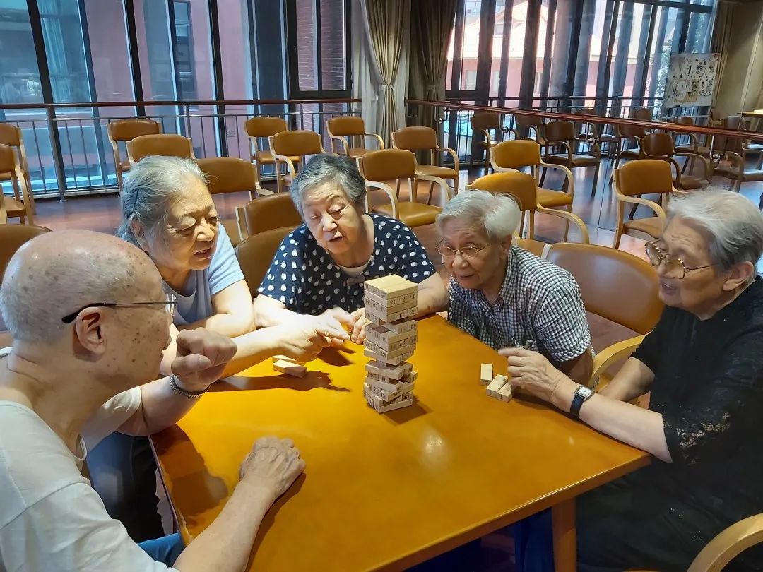 隨后,我們便對游戲活動進(jìn)行了升級,購置了各類游戲道具,如桌面保齡球、安全磁性飛鏢、抽積木等等,而圍桌游戲的氛圍,更是讓長者們在過程中,增進(jìn)了感情。